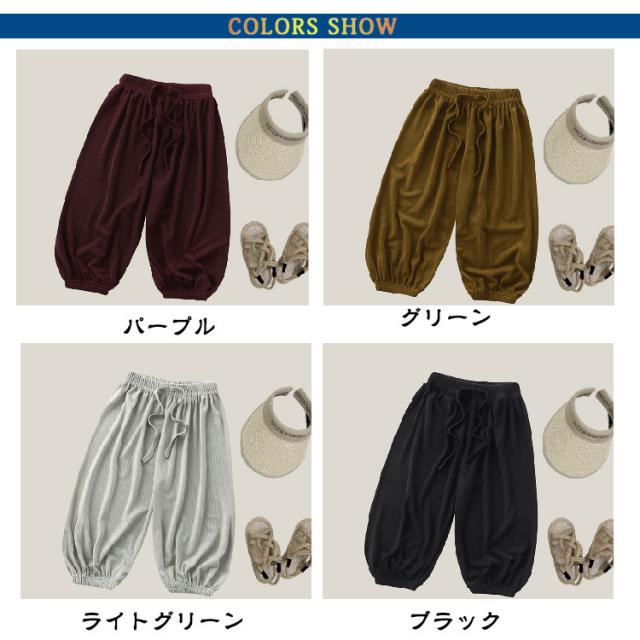 | 今季流行のサルエルパンツのようなキッズゆったりパンツが登場! 接触冷感生地、ひんやり涼しく穿きこなせるから真夏でも快適に着こなせるのも嬉しいポイントです。 ウェストと裾が柔らかいゴムで締まって、長時間着用しても窮屈さなどは一切なく楽です。 薄手のタイプで、真夏の日焼け対策や蚊対策などにもぜひお薦めな1本です。 | |