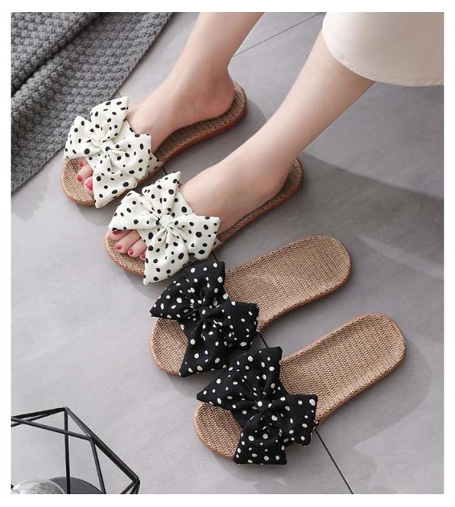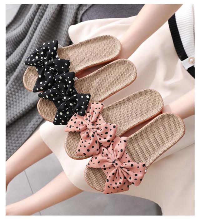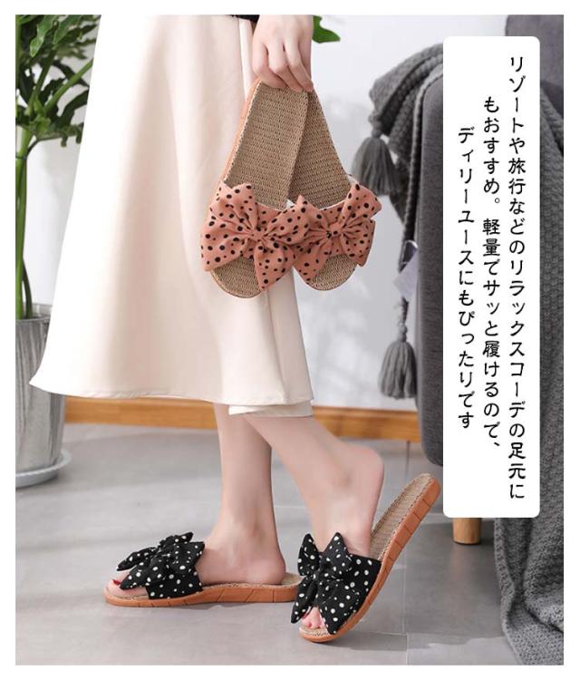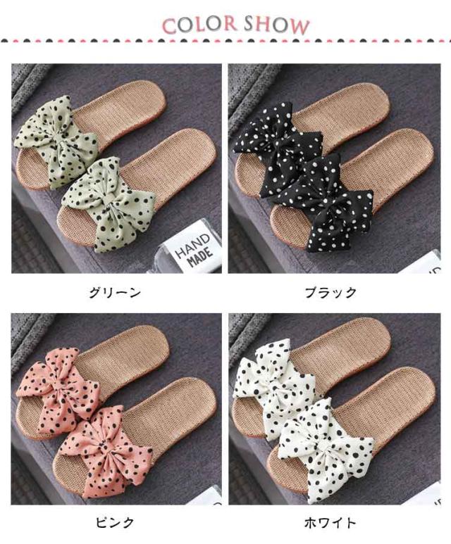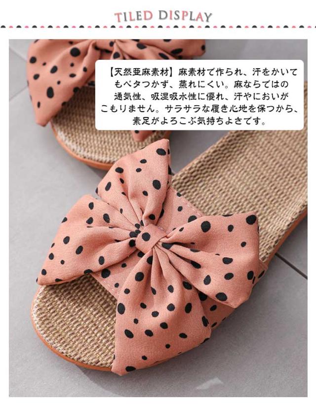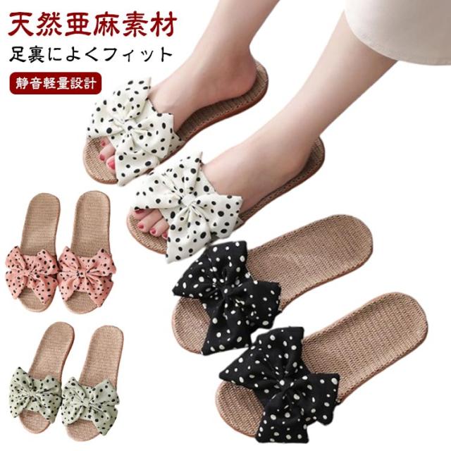 夏 スリッパ スリッパ サンダル リネン 春 ルームシューズ ドット 夏用 リボン かわいい おしゃれ スリッパ レディース 室内 ルームシューズ 麻スリッパ 涼しい 蒸れない 軽量 スリッパ 室内履き 可愛い
