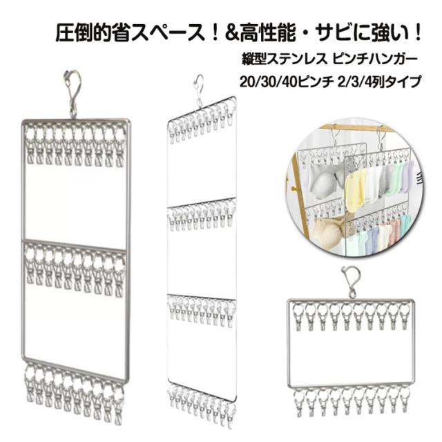 | 圧倒的省スペース!&高性能・サビに強い! 縦型ステンレス ピンチハンガー 20/30/40ピンチ 2/3/4列タイプ 縦型デザインで省スペースを実現! 縦型デザインなので、幅わずか3.2センチです。 通常の横幅タイプと比べ10倍以上のスペース確保に成功! アパート、マンション、狭小住宅等、洗濯物の干すスペースにお悩みの方に最適な物干しです! サビに強いステンレス製です!プラスチックに比べ丈夫で長持ちします! 防風フック付き、そして強力ハサミなので、外に干して強風でも安心です。 | |