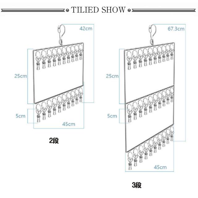 | サイズについての説明 | 2段(20ピンチ) 3段(30ピンチ) 4段(40ピンチ) ※実寸はメジャー採寸の為、若干の誤差が生じる場合があります。 |