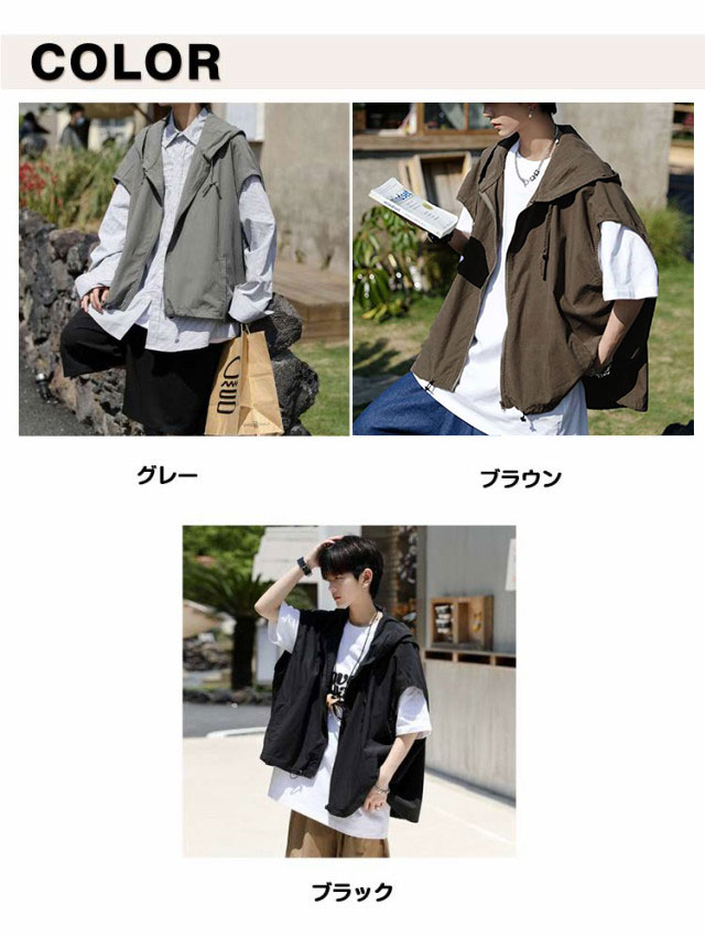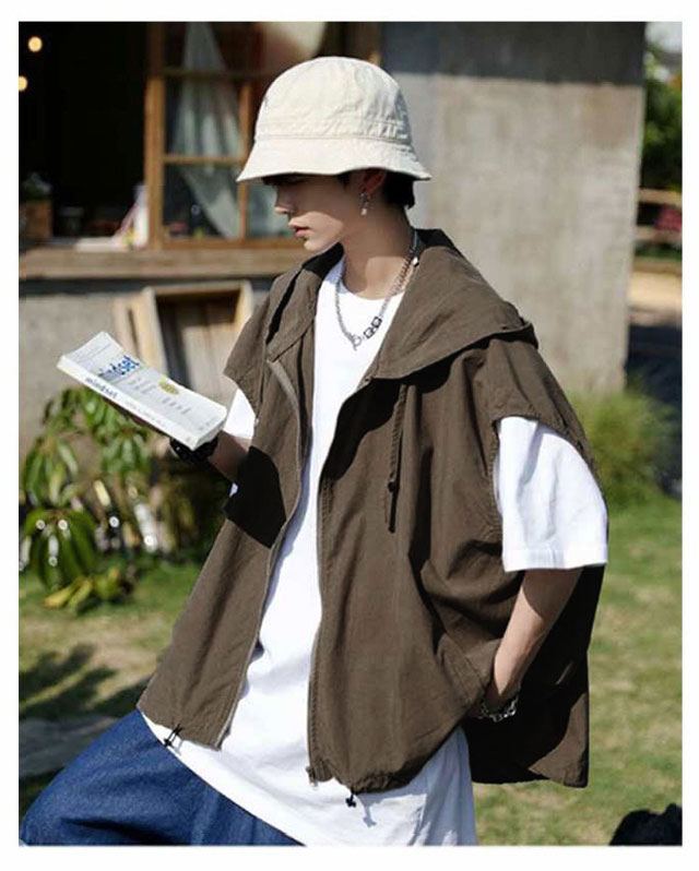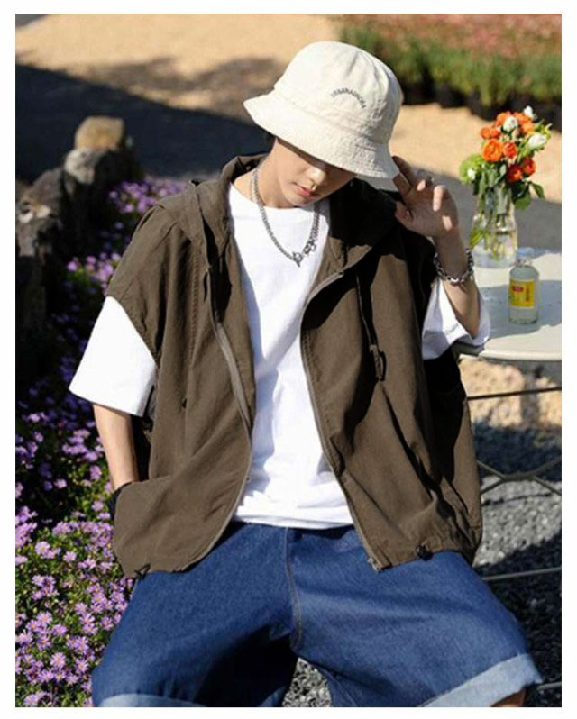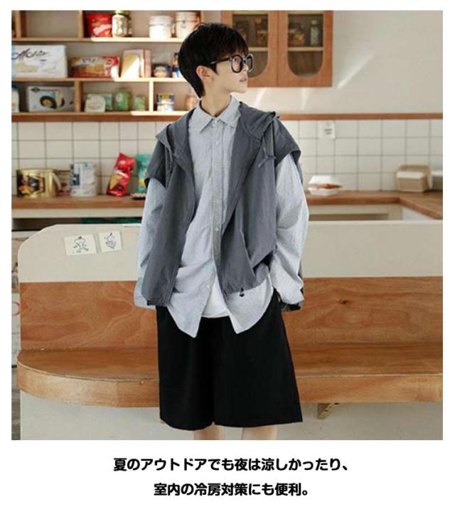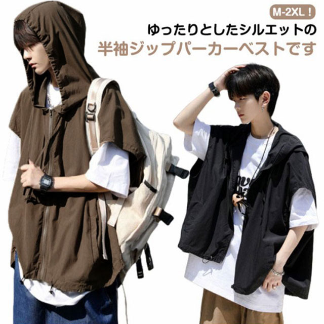| M-2XL!ゆったりとしたシルエットの半袖ジップパーカーベストです。 ゆとりのあるシルエットと肩先が隠れる袖丈で自然と気になる箇所をカバーしてくれる。 夏のアウトドアでも夜は涼しかったり、室内の冷房対策にも便利。 ロンTやシャツの上から羽織るのも良し、Tシャツなど袖丈の短いトップスとも相性抜群です。 着合わせ次第でロングシーズンにて着用できるのも魅力。 | |