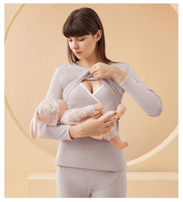 秋 授乳対応 クロスオープン 綿混 インナー 産後 あったか 綿 コット 授乳口 吸湿発熱 長袖 冬 暖かい 授乳 春 授乳インナー ママ 産後サイズ 長袖インナー おしゃれ 無地 シンプル
