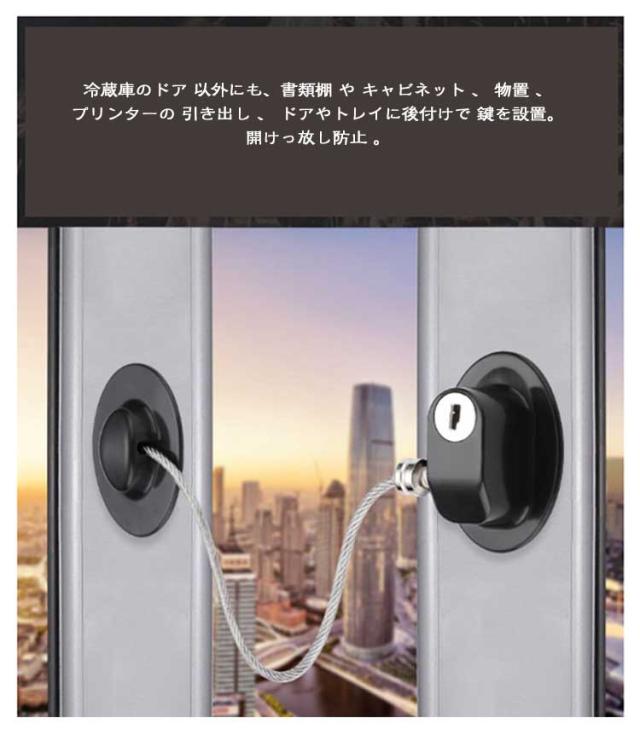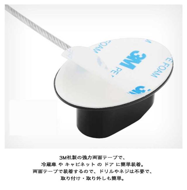 | 鍵付きの 冷蔵庫ドアロック 。 こんな方におすすめ!子供や赤ちゃんの冷蔵庫からの盗み食いやいたずらを防ぎたい方、高齢者の方の冷蔵庫の開閉を防止するための 認知症介護用品 、ダイエット 中の間食を防ぎたい方。 3M社製の強力両面テープで、 冷蔵庫 や キャビネット の ドア に簡単装着。両面テープで装着するので、ドリルやネジは不要で、取り付け・取り外しも簡単。 冷蔵庫のドア 以外にも、書類棚 や キャビネット 、 物置 、プリンターの 引き出し 、 ドアやトレイに後付けで 鍵を設置。開けっ放し防止 。 キーを回して固定しているワイヤーを外すと、ドアオープン。 | |