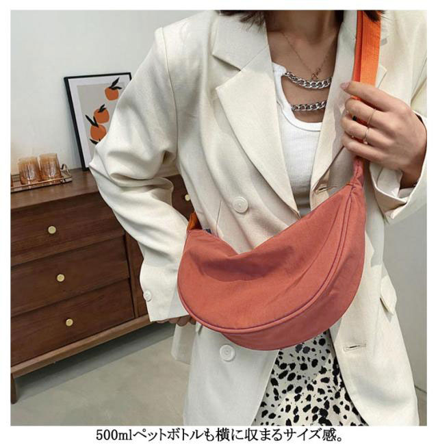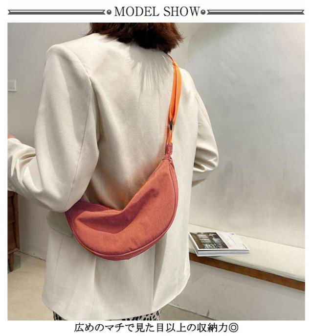 ナイロン ショルダーバッグ ハーフムーン 斜めがけ レディース バナナショルダー メンズ 黒 ラウンド ボディバッグ ポシェット ミニバッグ バック バッグ 小さめ 軽量 おしゃれ スポーツ 白 緑 ハーフムーン オレンジ