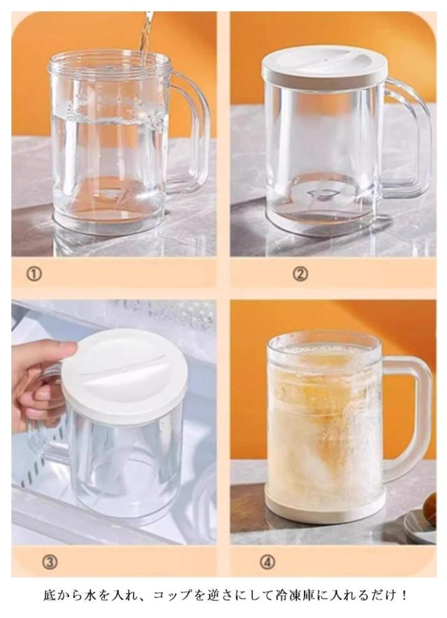 | 自宅で簡単にクラッシュアイスが作れる保冷コップ。 底から水を入れ、コップを逆さにして冷凍庫に入れるだけ! 飲み物が一瞬で冷えてくれる、おしゃれなクラッシュアイスをご自宅で! 美味しいエスプレッソ、カフェラテ等をゆっくりお楽しみいただけます。 カンタンに作れる、一度使ったら手放せなくなるアイテムです。 | |