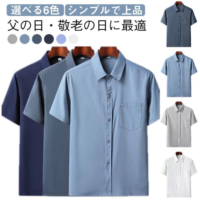 50代 アイスシルクシャツ 涼感 半袖 メンズ 夏用 カジュアル シャツ 40代 大きサイズ 60代 ビジネス トップス お父さん おじいちゃん 涼しい シニア服