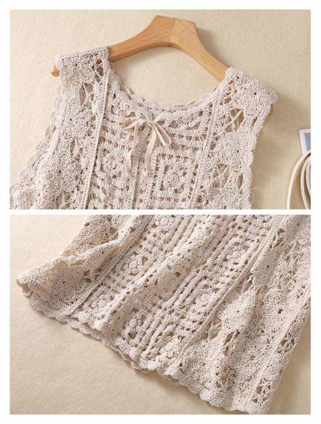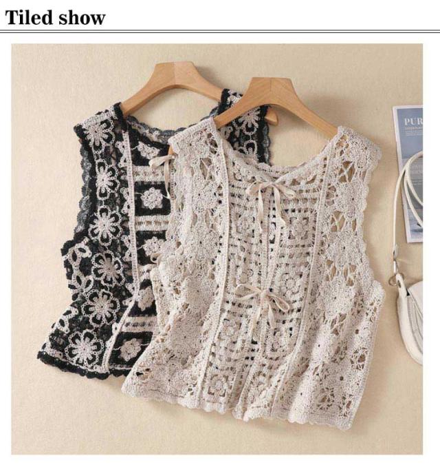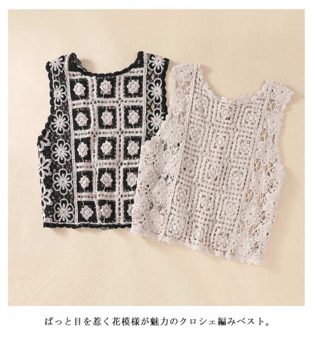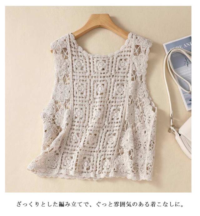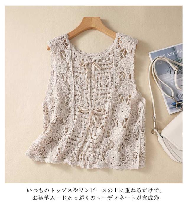 クロシェ編み ショート丈 レディース 透かし編み レイヤード カーディガン ニットベスト 夏 花柄 プルオーバー かぎ針編み ベスト ベスト ベスト クロシェ編み 涼しい 重ね着 通勤 きれいめ レトロ おしゃれ 大人カジュアル ゆったり