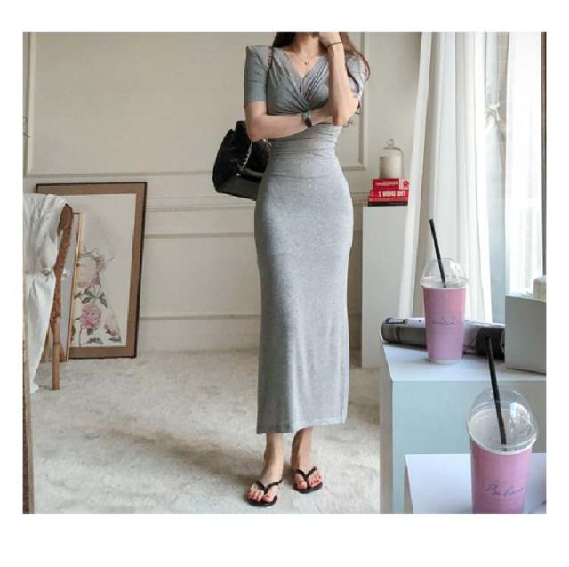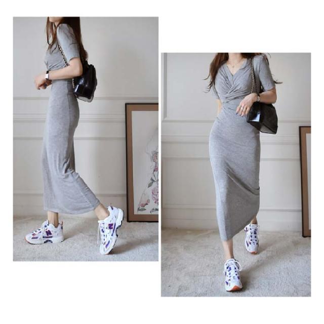 レディース ワンピース ワンピ ロング 半袖 ミモレ丈 ロングワンピース 半袖 スリム ハイウエスト タイト ドレス フィット Tシャツワンピ 薄手 着痩せ ストレッチ シンプル クロス おしゃれ フェミニン カジュアル 春 夏 秋