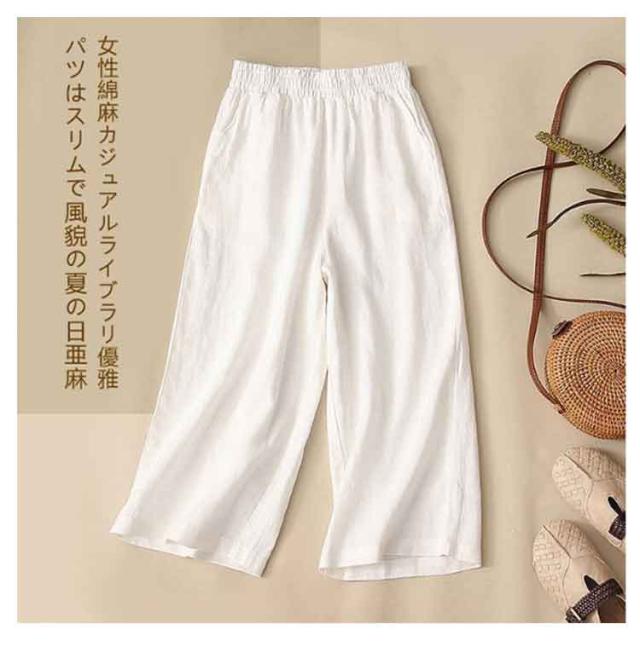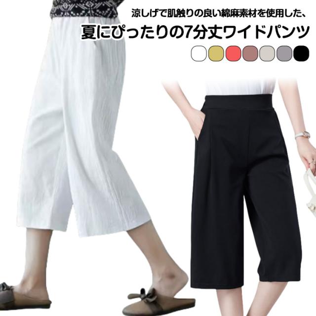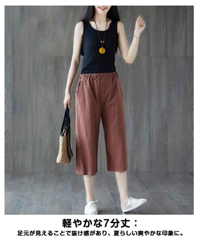 薄手 ルームウェア 綿麻風 7分丈 夏 ステテコ レディース 春 ゆったり ステテコ 大きいサイズ 部屋着 ハイウエスト ストレート カジュアル ナチュラル 無地 シンプル ブラック ホワイト