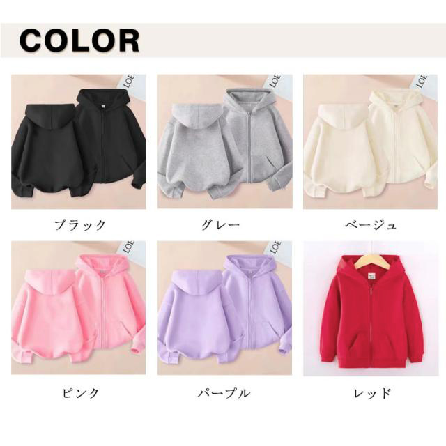 | 100-160cm!カジュアル感のあるキッズフードパーカー。 季節の変わり目や冷房対策など、寒い日の重ね着にもオススメ! デザインなので幅広いシーンで活躍するアイテムです。 サイズ展開豊富で兄弟・姉妹でのリンクコーデも! | |