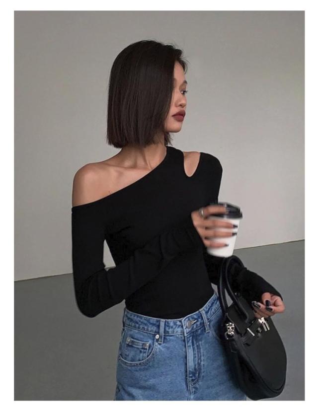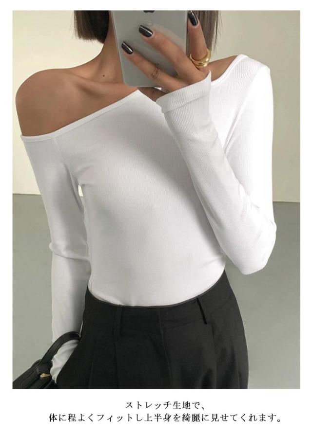 リブニット ニット ワンショルダー レディース 秋 オフショルダー トップス トップス 長袖 ニットプルオーバー セーター ニットソー 秋冬 細見え カットソー 大人可愛い シンプル おしゃれ カジュアル フェミニン 春 ワンショルダー 冬