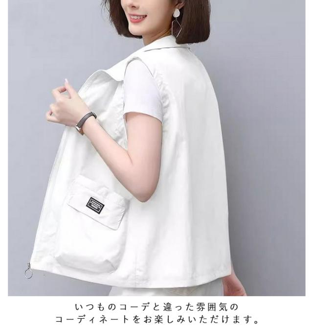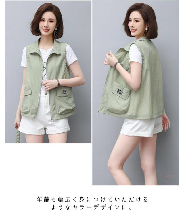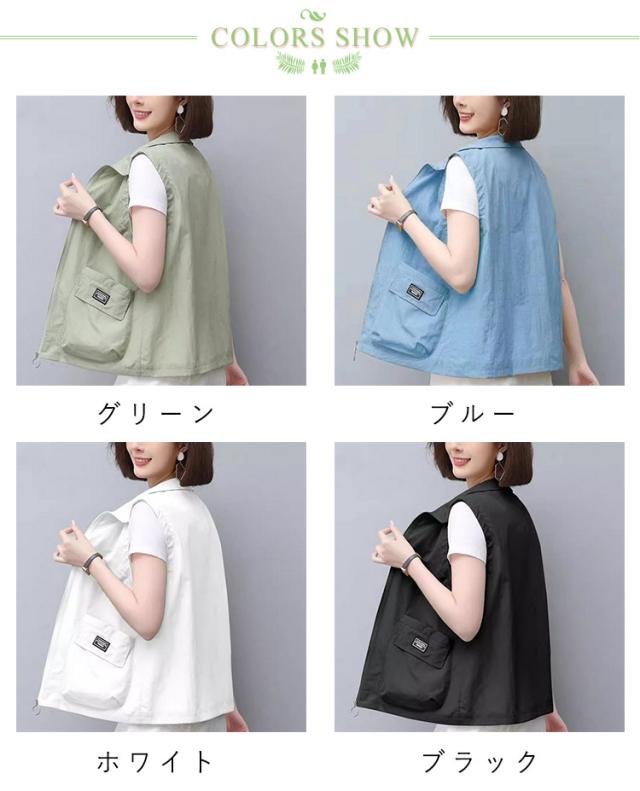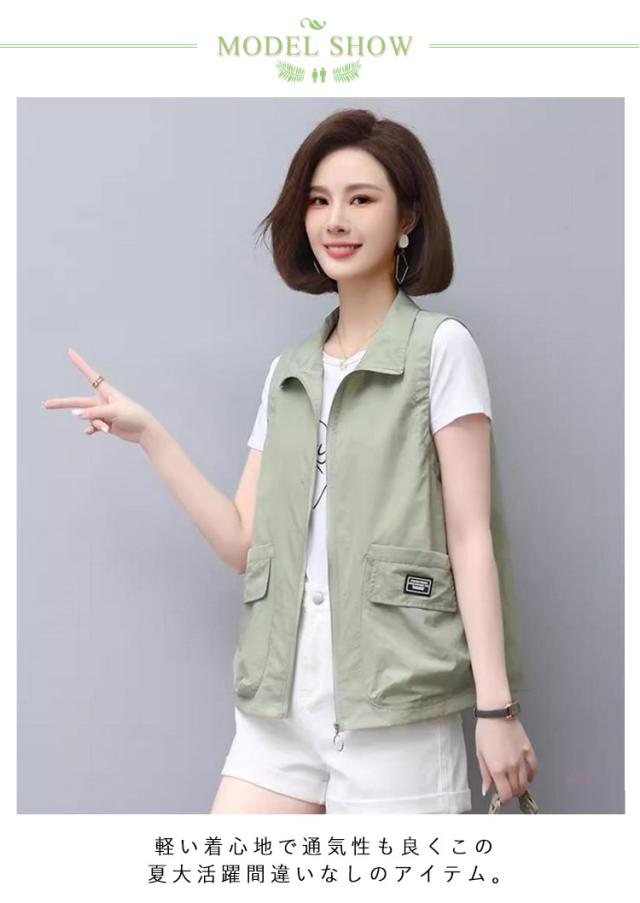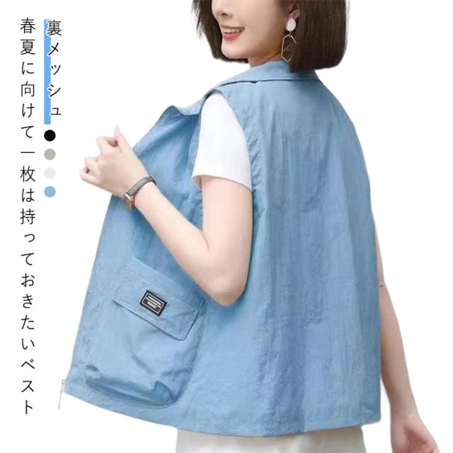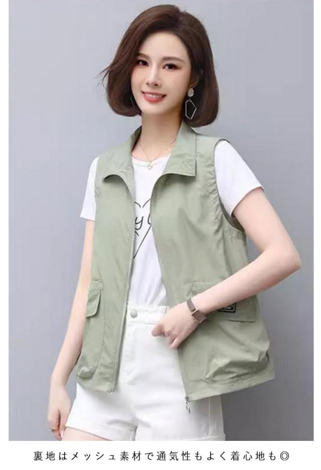 ジップアップ ノースリーブ 裏メッシュ スタンドカラー ベスト ベスト ジャケット 春夏 薄手 カジュアル ミリタリーベスト ポケット付き 前開きベスト 大人 サマージャケット カジュアル アウトドア 無地 レディース