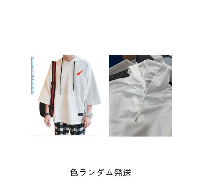 パーカー メンズ 半袖パーカー 半袖 薄手パーカー フード付きtシャツ プルオーバーパーカー 薄手 春服 夏服 冷感 トップス 大きいサイズ 無地 シンプル 夏 韓国 白 黒 ホワイト ブラック 送料無料