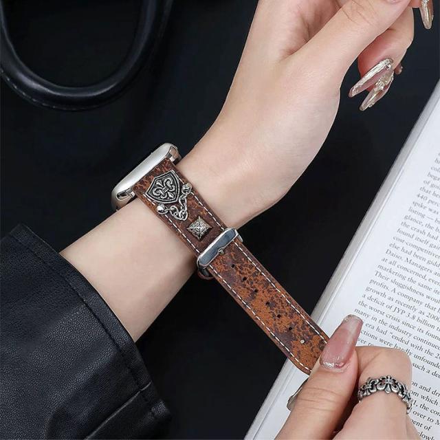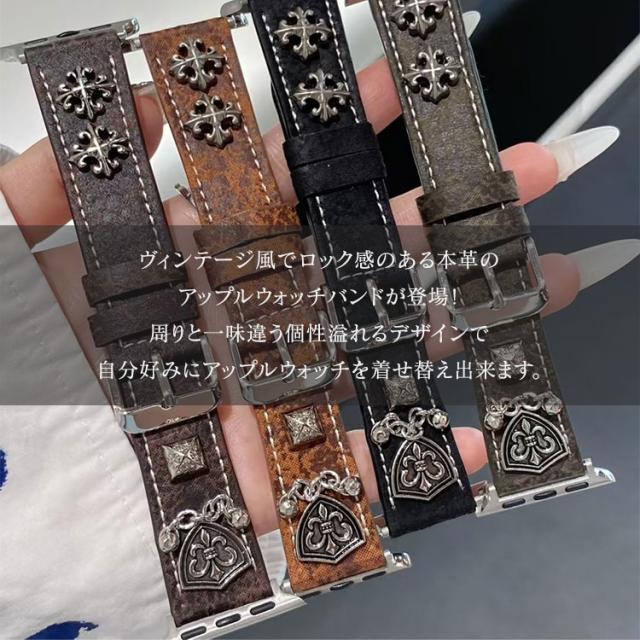 スタッツやチェーンをあしらったロック、ヴィンテージ感のあるかっこいいデザインで個性的にアップルウォッチを変身させることが出来ます。