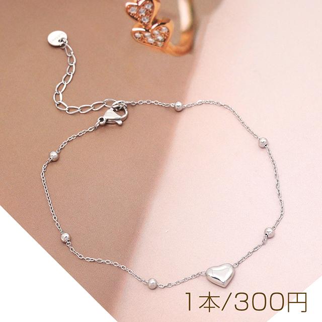 アンクレット ステンレス鋼 ハート 丸玉 シンプル デザインチェーン 長さ約21+6cm(1本)