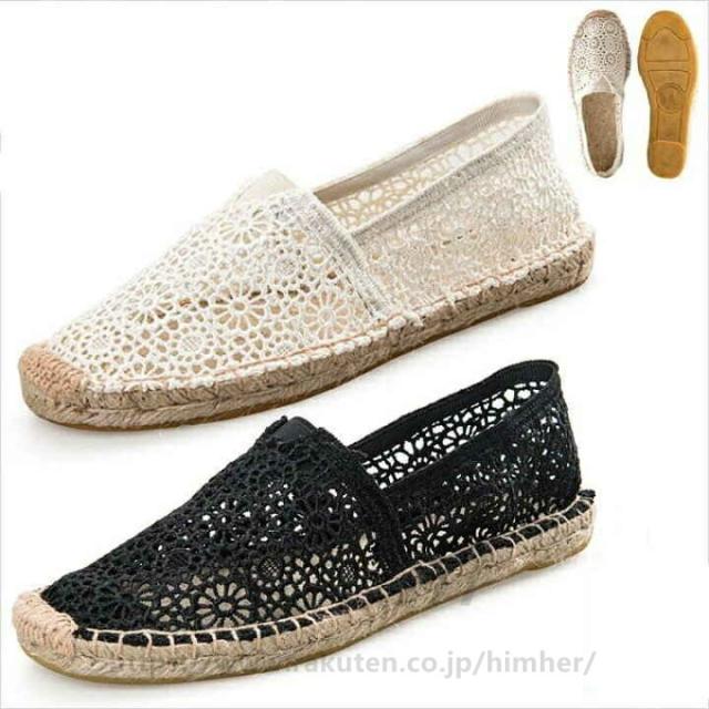 レース エスパドリーユ 柄 無地 花柄 靴 早い者勝ち ホワイト ブラック 22.5cm 23.0cm 23.5cm 24.0cm 24.5cm 25.0cm