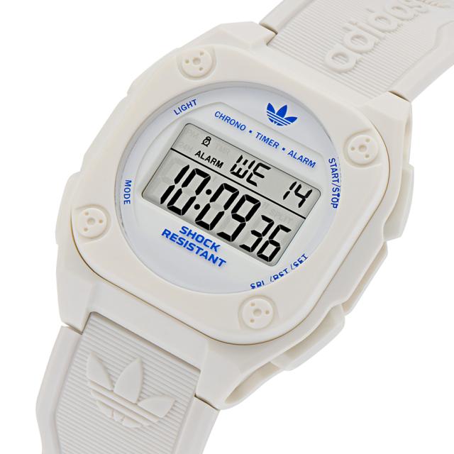 アディダス シティ テック フォー AOST25031 メンズ レディース 腕時計 電池式 クオーツ デジタル 樹脂ベルト ホワイト