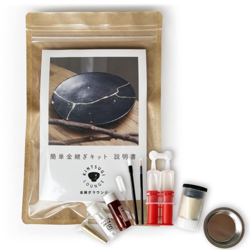 ?簡単・手軽 初心者の方でも手軽に簡単に金継ぎを始められるよう、金継ぎに最低限必要な材料が、このキット一つで揃います。 ?初めての方におすすめ!『金継ぎは難しそう...』『時間がかかりそう』『気軽にやってみたい』という方に大変おすすめのシリーズです。カラーイラスト付きの、わかりやすい説明書が付いているので、どなたでも簡単・気軽に金継ぎをお楽しみいただけます。 ?短時間で完成こちらのキットでは「新うるし」(合成うるし)を使用しております。本物の漆を使用していないので、かぶれる心配がなく、乾燥時間も短縮でき、短時間で気軽に金継ぎをお楽しみいただけます。 ?食器として使用できる『食品衛生法』をクリアした合成うるしを使用しているので、修復した食器は『食器として』お使いいただくことが可能です。(耐熱温度60°)食洗機やレンジでのご使用はお避けください。 ?金継ぎ講師監修大切に使う、大切に暮らす」をコンセプトに、各地で金継ぎ教室を開催している金継ぎラウンジが、『生徒さんの声』をもとに、ご自宅でも簡単に金継ぎをお楽しみいただけるよう開発したキットです。 ?安心補償付き万が一商品に不良があっても、解決まで誠心誠意対応させていただきます。 お気軽にご連絡ください。 ?セット内容説明書、金粉(真鍮粉)、エポキシ接着剤、エポキシパテ、簡易面相筆・簡易平筆、絵皿、耐水性紙やすり# 400、テレピン油、合成樹脂、金継ぎに必要な材料が全て揃ったセットになっております。 エポキシパテに記載されている日付についてこちらの日付は『製造年月日』となっております。