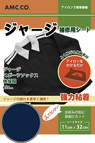 ジャージ補修シート ネイビー(紺) 11cm×32cm 車のシート・レーパンの補修にも ストレッチ素材 アイロン接着 日本製 水洗い・クリーニングOK