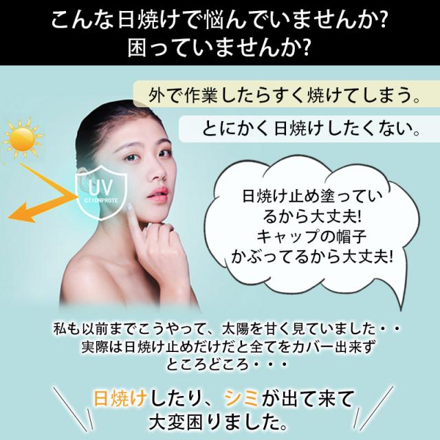 首までガード、完全防備のUVカット 紫外線対策用 マスク付日よけ帽子。