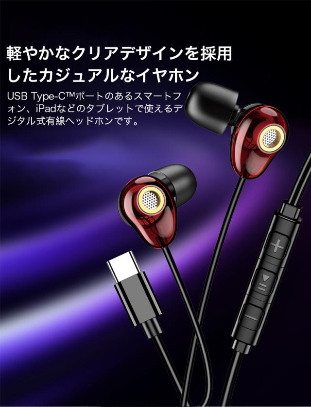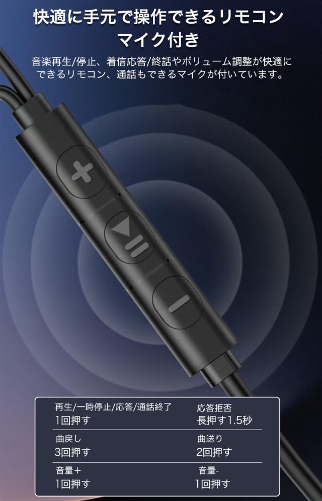タイプc イヤホンマイク Type-Cイヤホン 有線 イヤフォン イヤーフィット Type-C 有線 リモコン付き スマホイヤホン 多機種対応 高音質 おしゃれ