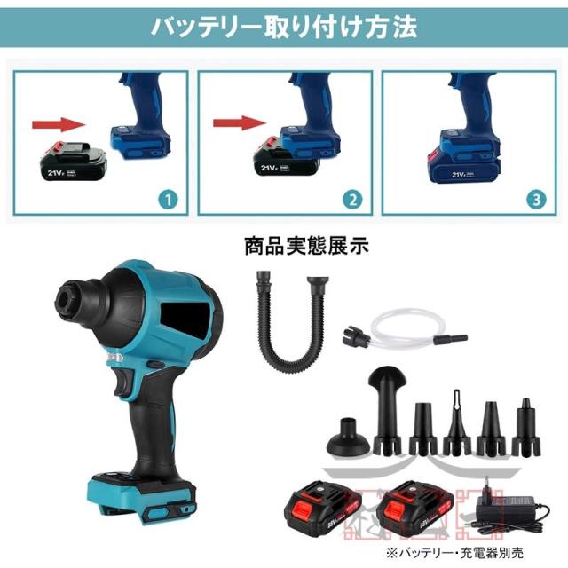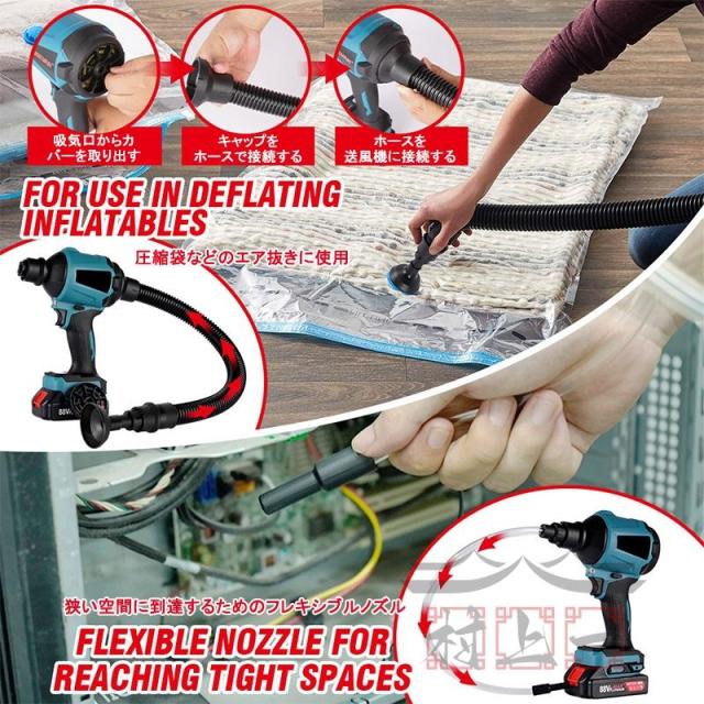 エアダスター コードレス マキタ 互換 LEDライト付き 電動エアダスター 風速200m/s 充電式 多機能 ブロワー ノズル付属 空気入れ 1台3役 超強力