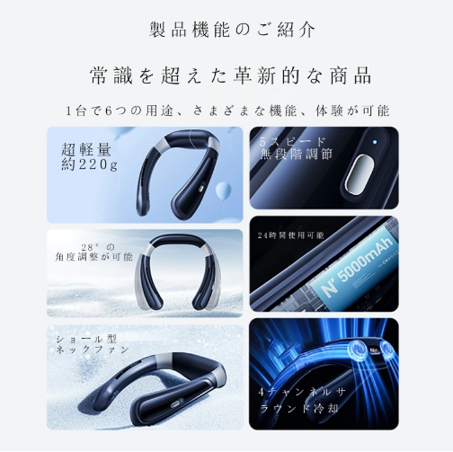 首掛け扇風機 ネッククーラー 羽なし 軽量 静音 マイナスイオン 扇風機 首かけ 連続送風 首掛け 扇風機 ネックファン 携帯 4段階風量 USB充電 5000mAh ハンディ 持ち運び 熱中症対策 コンパクト 冷却 省エネ 猛暑対策 空気浄化 立体冷風