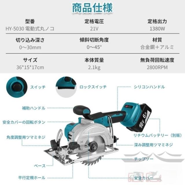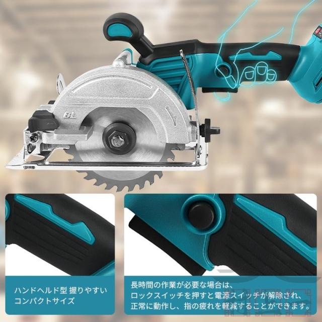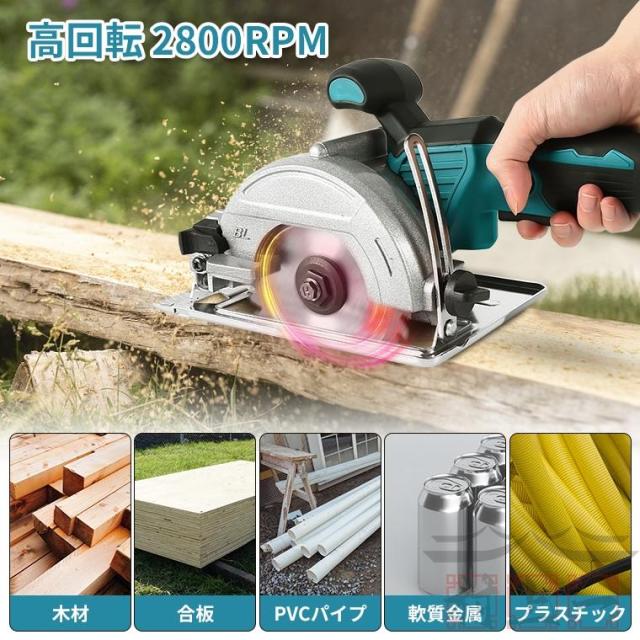 無負荷回転数は2800r/minの充電式マルノコは持ちやすく、耐久性に優れる刃が付き、場所選べずに木材、PVCパイプ、合板、プラスチックの切断に適しています。