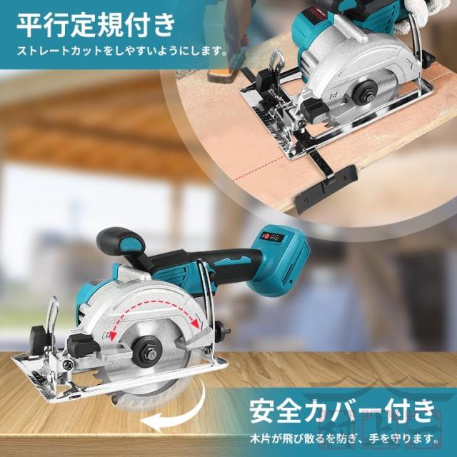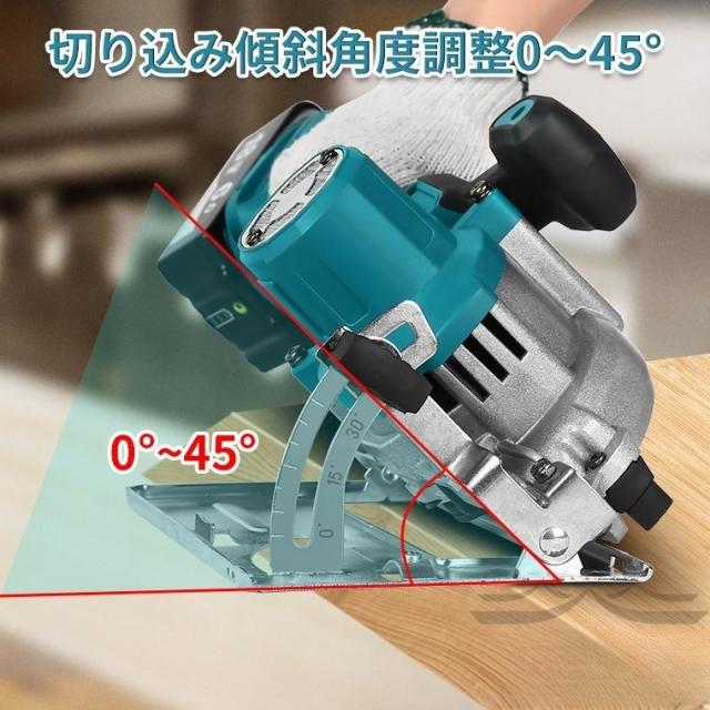 マルノコ 充電式丸ノコ コードレス 電動のこぎり 電気マルノコ 卓上 刃径125mm/内径10mm 切断角度調節 定規 木工切断 マキタ バッテリー別売