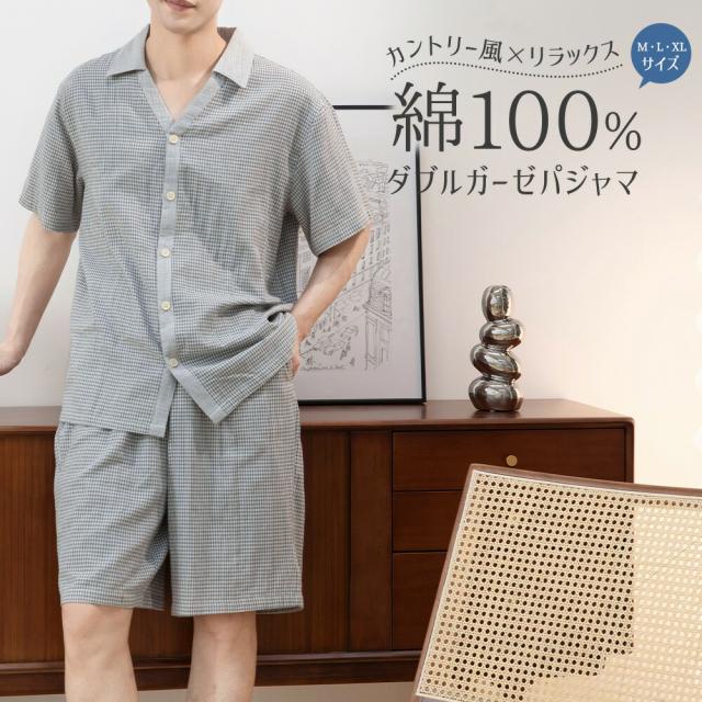 パジャマ メンズ 男 綿100% ダブルガーゼ セット ガーゼパジャマ 半袖 半ズボン 夏 前開き ダブルガーゼ 寝巻き ルームウェア お揃い