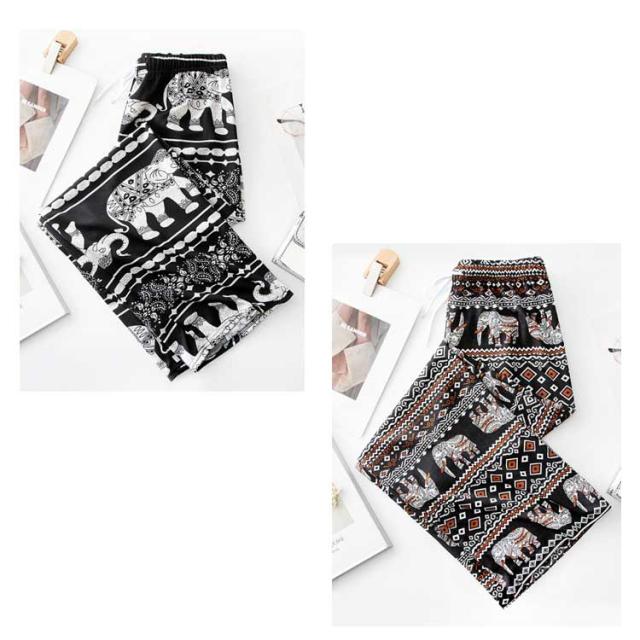 | 【2枚セット】 さらテロ素材のワイドパンツ!! 薄手素材で夏に1枚着用してみませんか? エスニック系のゾウさん柄パンツで、アジアンファッション好きな方におすすめです♪ 男女兼用ユニセックス仕様です♪ ウエストゴム仕様で、ひも付き◎ | |