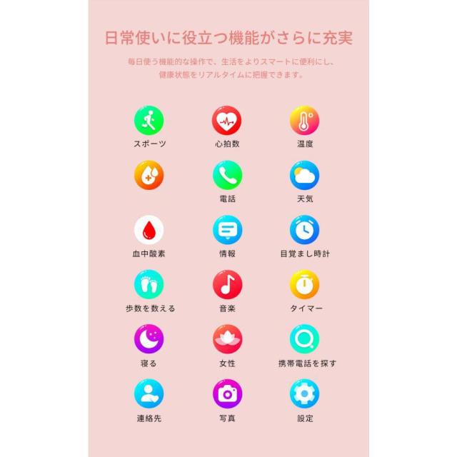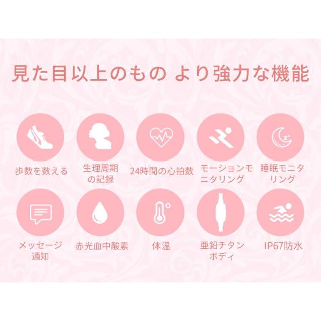 スマートウォッチ レディース 通知機能 LINE通知 血圧測定 心拍数 おしゃれ 腕時計 生理管理 カロリー 睡眠管理 運動 24時間健康管理 女性向け 天気予報 彼女