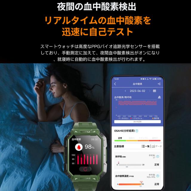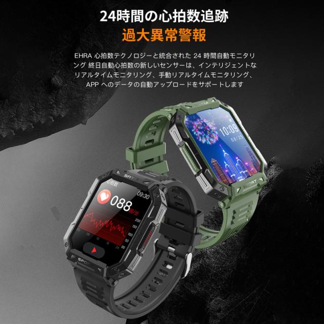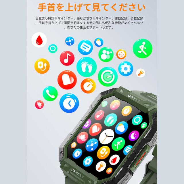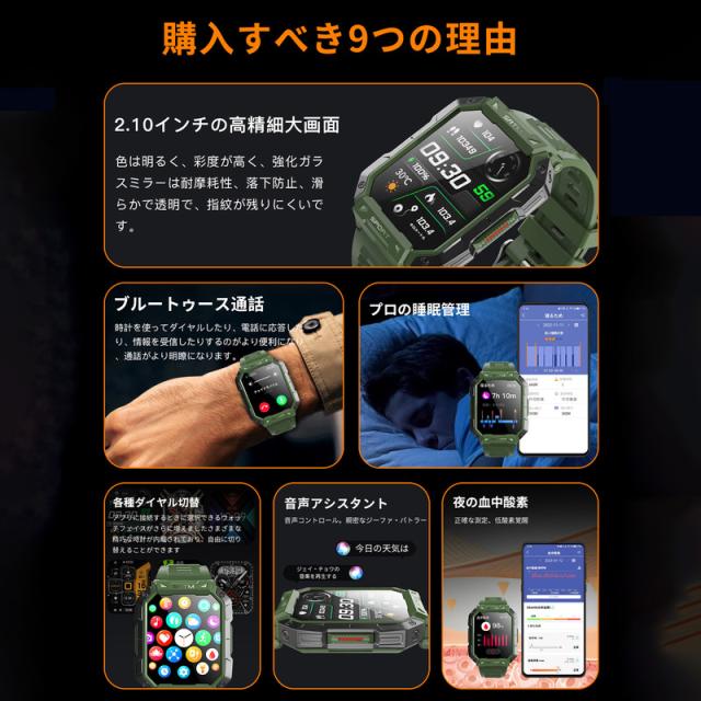 スマートウォッチ 軍用規格 日本製センサー 通話機能 皮膚温 心拍数 血中酸素 睡眠管理 多機能測定 2025年 大画面 通話可能 着信通知 IP68防水 目覚まし時計
