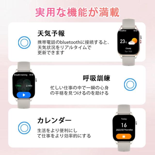 スマートウォッチ 女性生理管理 体温 歩数計 睡眠検測 健康管理 心拍数 血中酸素 血圧測定 Bluetooth5.1通話機能 日本製センサー搭載 プレゼント レディース