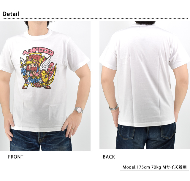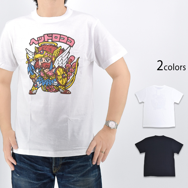 ビックリマン半袖Tシャツ「ヘッドロココ」(BKM-2523)のご紹介です。 ビックリマンは、1977年に株式会社ロッテより発売されたチョコレート菓子。 おまけとして封入されたシールは大ブームを巻き起こし、今もなお人気を博しています。 今回は、そんなビックリマンをモチーフの主役に採用した半袖Tシャツが登場しました! フロントにはヘッドロココを大胆にプリントしました。 ヘッドロココは天使軍のリーダー的存在で、ビックリマンシリーズの中でも特に人気の高いキャラクターです。 天使軍の「ヘッド」として悪魔軍との戦いを指揮をとり、「ロココ」という名前の通り、華やかで優雅な雰囲気を持ち、聖フェニックスの力を受け継いだ天使軍の希望の象徴です。 インクジェットプリントを用いることで、シールの質感を表現しました。 ボディーにはさらりとした薄手なTシャツ生地を採用。 カジュアルに着こなしに取り入れることの出来るアイテムです。 | |||||||||||||||||||||||||