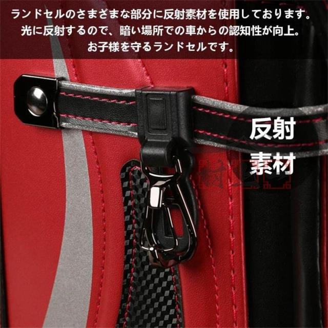 ●さまざまな場所に安心の反射素材付き、光で反射する素材や鋲を使用しております。 閉め忘れて中身の飛出し防止のワンタッチオートロック。 ランドセルのかぶせ(ふた)を閉めて取手を軽く押すとカチッと錠前ツマミが自動ロック。