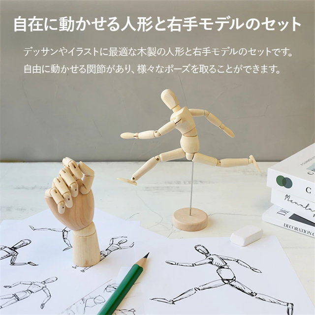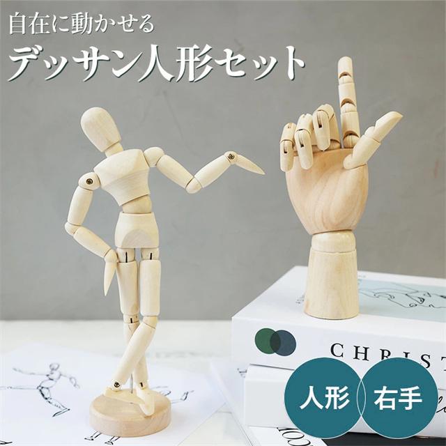 送料無料 冬新作 デッサン人形 2点セット 木製 全身 右手 セット デッサン ドール 人形 ハンド マネキン 手 関節 デッサンドール 指 人 模型 リアル ポージング 置物 インテリア モデル 漫画 絵画教室 絵コンテ まんが画材 漫画家 画材セット