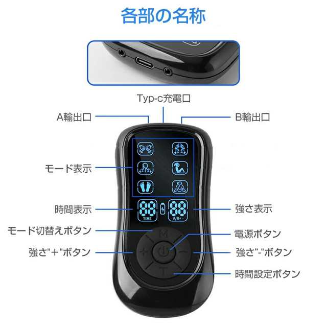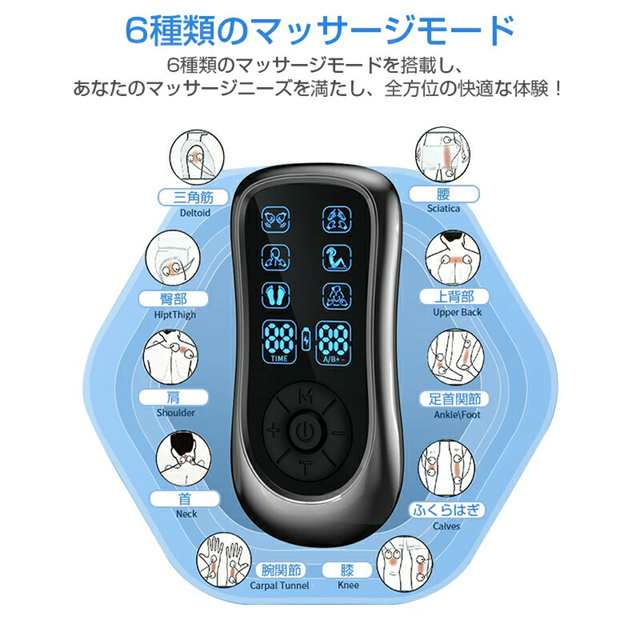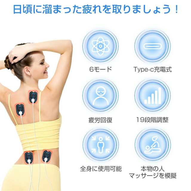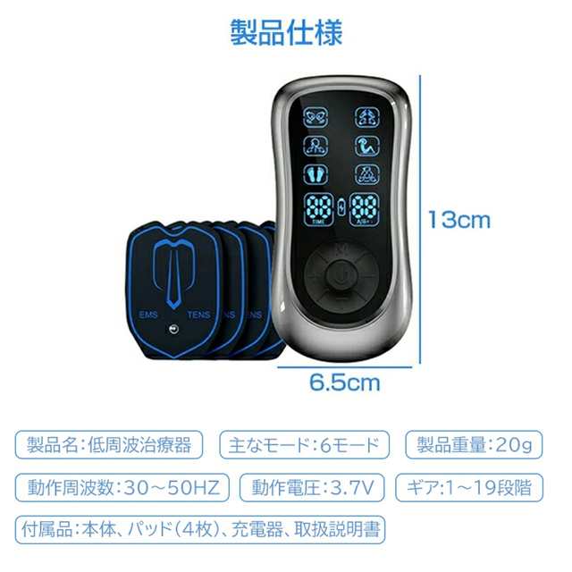 マッサージ器 低周波治療器 日本語説明書付き ems パッド付き 充電式 マッサージ機 温感 低周波 EMS微電流ケア 6種類モード 19階段調整 痛み緩和治療デバイス 疲労回復 神経痛 筋肉痛 痛みの緩解 敬老の日