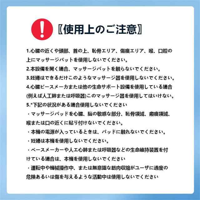 | 商品説明 | 【6モード+16段階の電気レベル】 6モード調節が可能で、その日の気分に合わせてお好みのモードでご利用いただけます。電気レベルを19段階からお選びいただけます。 お好みに合わせてレベルを調整してください。 初めての方は、レベル1からご使用いただき、徐々にレベルを上げて、自分好みの強さでご使用ください。 【小型で軽量な設計】コンパクトで服のポケットに入れるサイズでどこにも持っていけます。300mAhの電池を搭載し、1回の充電で約40時間持続可能。 【パッドは水洗い可能です】パッドの粘着面が汚れて貼りつきにくくなったら、水洗いで粘着面を回復させることができます。 少量の水を流しながら、指先で軽く洗い自然乾燥します。 お湯や洗剤、薬品(シンナー、ベンジンなど)は使用しないでください。 【使い方簡単】モードの選択、レベル、時間などの画面がディスプレイに表示され、見やすくて使い簡単です。15分操作しないと自動的に電源が切られ初めての方でも安心してお使いいただいて両親へのプレゼントに最適です。 【パッケージ内容】日本語説明書×1、USB充電ケーブル×1、交換用パット×4、本体×1 【ご注意】本製品は医療機器ではありません。 |