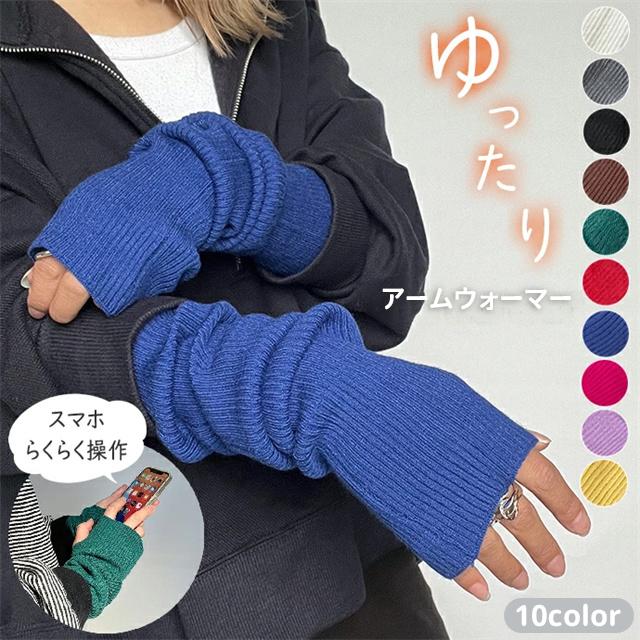 送料無料 冬新作 アームウォーマー ニット おしゃれ かわいい アームカバー ハンドウォーマー 韓国 指穴 ロング ワイド 冷えとり 手首 てぶくろ 冬 暖かい 温かい 冷え対策 冷え性 防寒 無地 寒さ対策 カラフル あったか 温活 オフィス