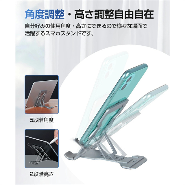送料無料 冬新作 スマホスタンド 折りたたみ 高さ調節 タブレット スタンド 縦置き 携帯スタンド 滑り止め コンパクト 角度調整 軽量 スマホホルダー タブレットスタンド ブックスタンド 一体型 卓上 折り畳み アルミ合金 スマートフォンスタンド