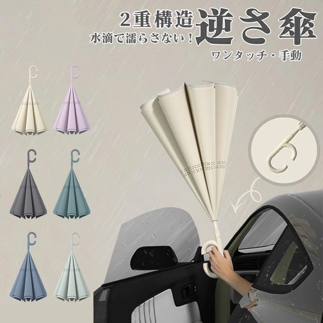 送料無料 春新作 逆さ傘 ワンタッチ 手動 晴雨兼用 自立式 2重構造 UVカット 紫外線遮断 ドライブ 車 自立 長傘 遮熱 遮光 晴雨両用 ハンズフリー 強風 雨の日 暑い日 暑さ対策 日傘 二重傘 逆さま傘 逆転傘 レディース メンズ 男女兼用