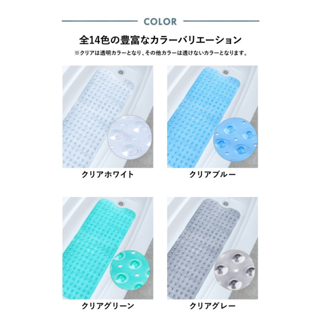 お風呂マット 赤ちゃん 浴室内 冷たくない 浴槽マット 浴槽マット滑り止め お風呂 滑り止め 子供 滑り止めマット 洗い場 マット 防カビ 風呂 浴槽滑り止め バスタブ 浴槽 高齢者 お年寄り すべらない 風呂マット 浴槽滑り止めマット お風呂滑り止めマット すべり止めマット 介護用品 転倒防止 事故防止 洗濯可能 サイズ調節可能 吸盤固定 水はけ 速乾 100×40cm 浴室 介護 妊婦 マタニティグッズ 沐浴 脱衣所 キッチン ズレ防止 透明 ホワイト 贈り物 ギフト プレゼント 出産祝い 敬老の日 ブルー グリーン パープル ピンク グレー プラスチック 孫 はさみで切れる 100 × 40