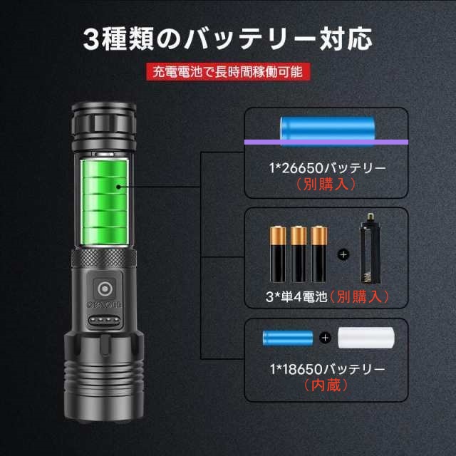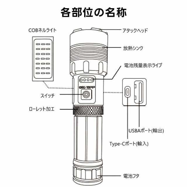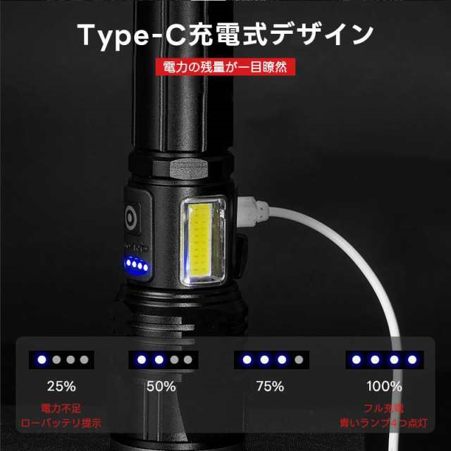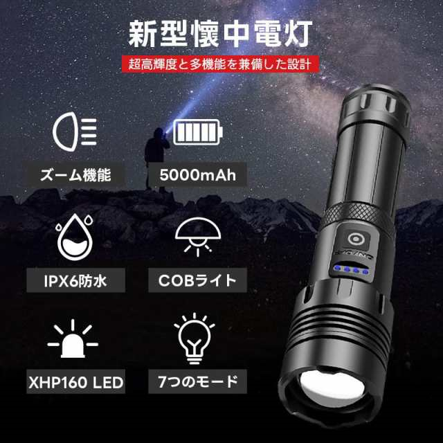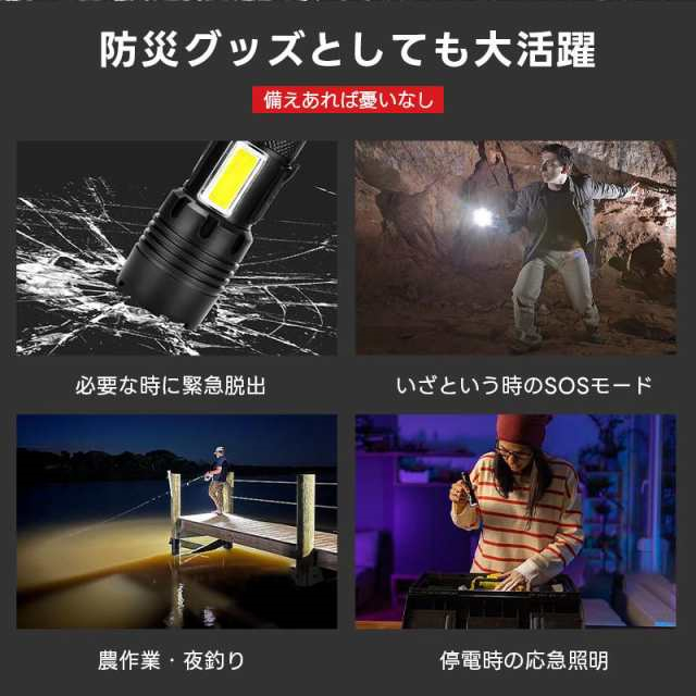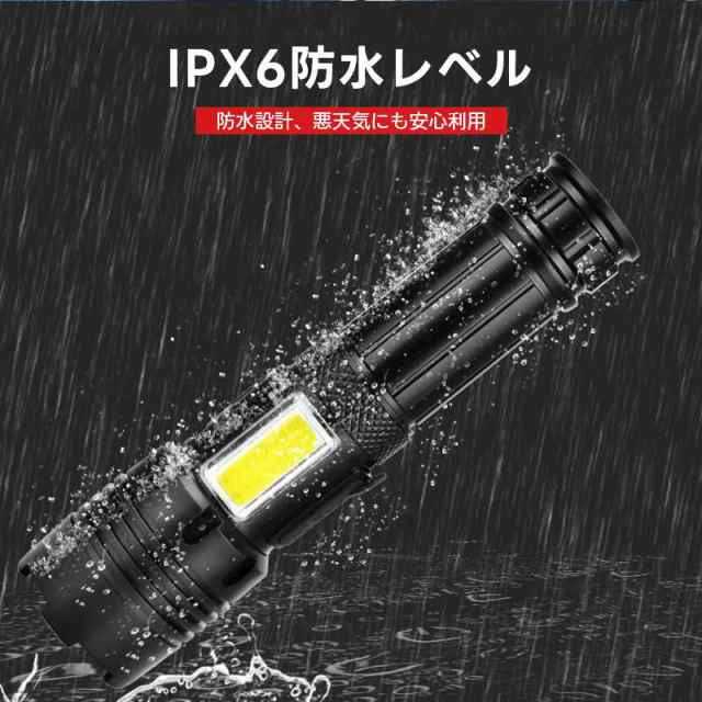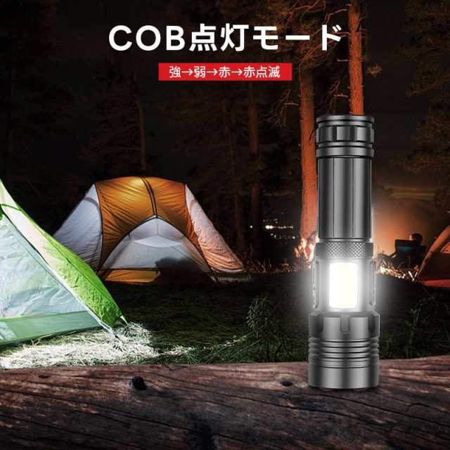 冬新作 送料無料 懐中電灯 LED 強力 ハンディライト 軍用 小型 超高輝度 ledライト 充電式 電池 最強 照明 COB 超高輝度 防災 地震 防水 登山 夜釣り キャンプ