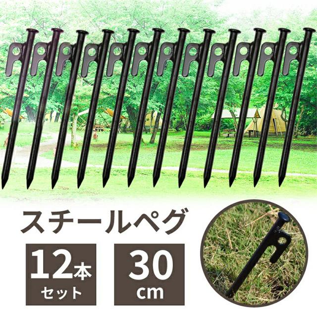 送料無料 冬新作 ペグ 30cm 8色 収納袋付き スチールペグ キャンプ テント タープ 12本セット 鍛造ペグ テント用 12本 スチール テント用品 アウトドア ピクニック ソロキャンプ キャンプ設営用品 頑丈 固定用ピン 耐久性 強靭