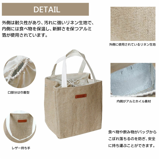 送料無料 春新作 ランチバッグ 弁当袋 巾着バッグ 保冷バッグ コットン 冷蔵トートバッグ スタイリッシュでシンプル 保温 保冷 大容量 アルミ箔断熱 厚手 リネン ソランチバッグ 小さめ おしゃれ ミニ ポーチ 保冷ポーチ 学生 通勤