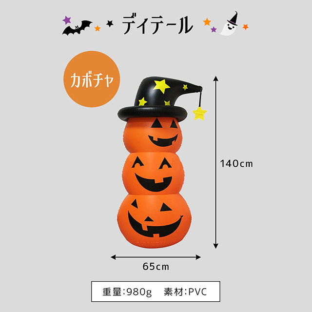 | サイズ/重量 | ◆【カボチャ】 縦:約 140cm 横:約 65cm 重量:約 980g ◆【オバケ】 縦:約 135cm 横:約 110cm 重量:約 750g |