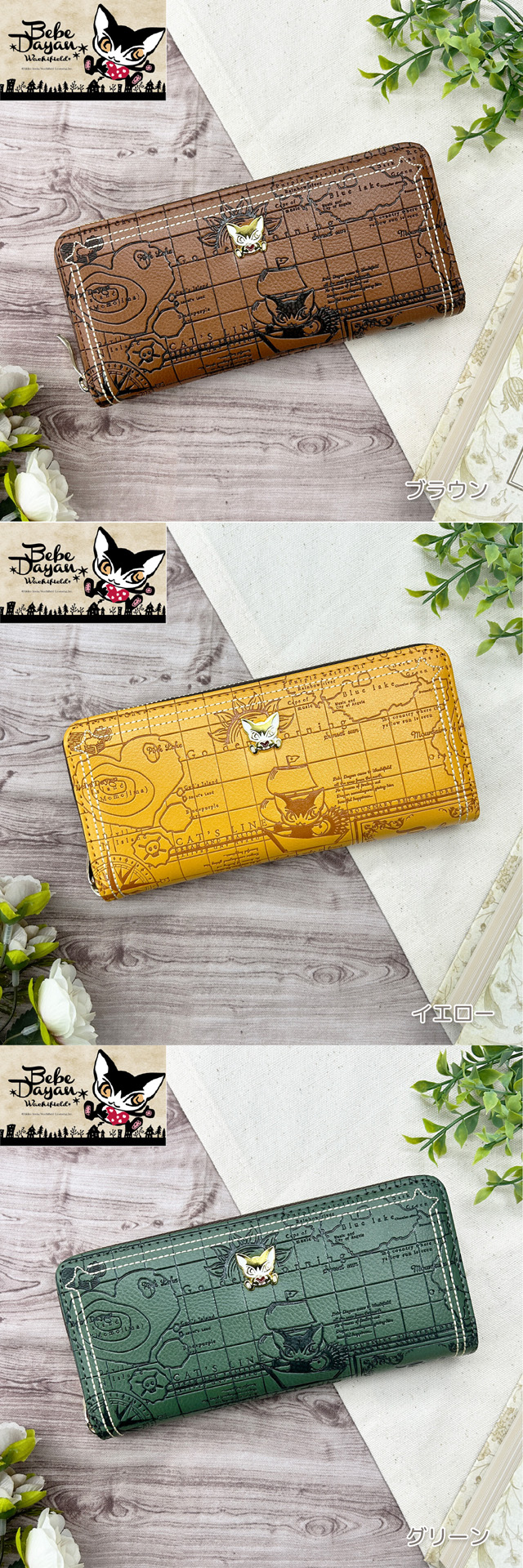 大人気の猫 【べべダヤン】シリーズ ラウンドファスナー 長財布 です。