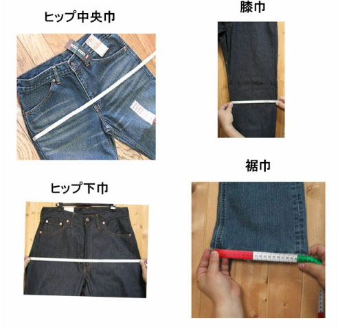 | 実寸裾幅 | 14.5cm | 15.5 | 16cm | 16.5cm | 実寸股下 | 74-〜77前後 |