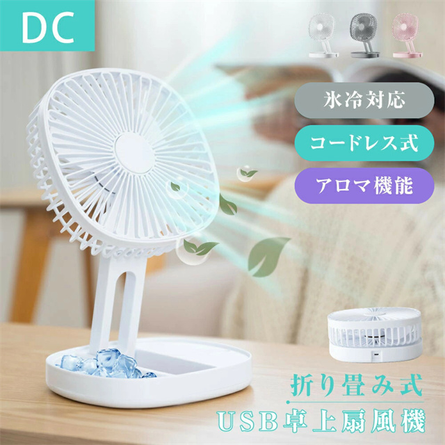送料無料 冬新作 卓上扇風機 氷タンク設置 アロマ機能 扇風機 持ち運び 折りたたみ 小型 コンパクト サーキュレーター USB充電 ミニファン 静音 ミニ扇風機 折り畳み アウトドア 風量3段階 省エネ 低騒音 おしゃれ 熱中症対策 暑さ対策